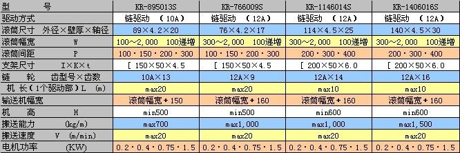 KR-S系列驅動輸送機使用單排鏈條驅動每一根滾筒,傳動平穩、勻速,適用于定速搬運物品的場合。
