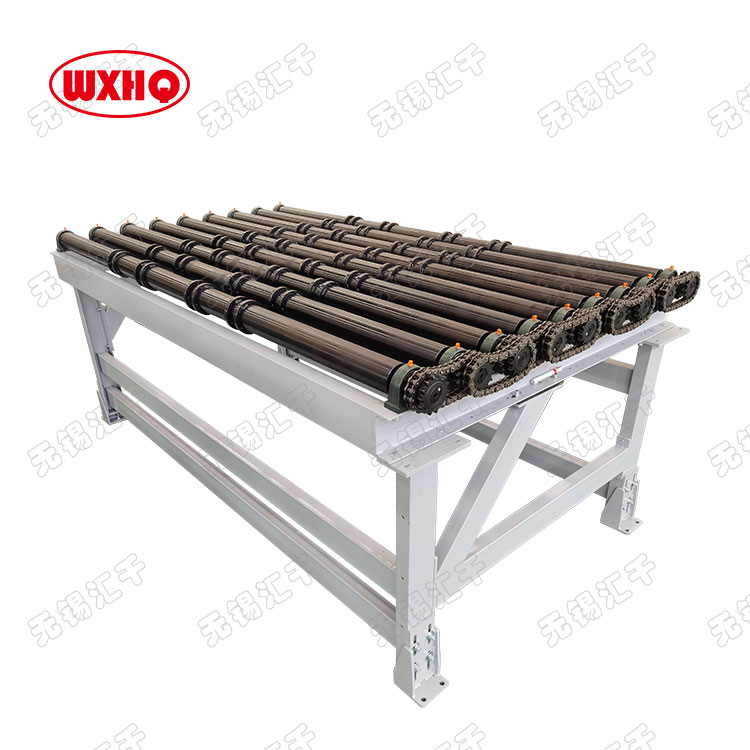 該滾筒輸送機為定制輸送機,實心澆鑄,承重大且耐磨,適合用于坦克履帶等物品運輸。
