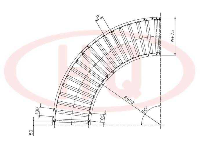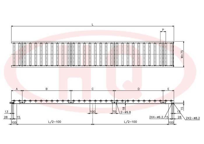 | 型 號 | 滾筒外徑(φ)×壁厚(t) 軸承 | 軸外徑(φ)×壁厚(t) 加工 | 支架形狀I(lǐng)×K×t | 機(jī) 長 L | 滾筒幅寬 W | 滾筒間距 P | 轉(zhuǎn)彎半徑 R | |||||
