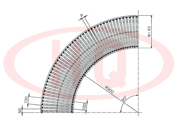 | 型 號(hào) | 滾筒外徑(φ)×壁厚(t) 軸承 | 軸外徑(φ)×壁厚(t) 加工 | 支架形狀I(lǐng)×K×t | 機(jī) 長(zhǎng) L | 滾筒幅寬 W | 滾筒間距 P | 轉(zhuǎn)彎半徑 R | |||||